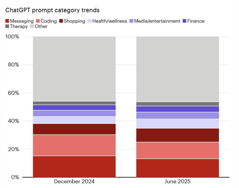 This change suggests that users are not solely using ChatGPT for advice, but also to find links to products or specific content similarly to how they might use a traditional search engine.
