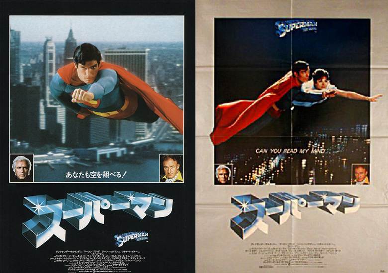 The poster shows our hero soaring upwards past New York’s skyscrapers. The film’s flying scenes wowed audiences of the era (though they look dated to today), so it’s no surprise to see them on these posters for Japanese version of the film.