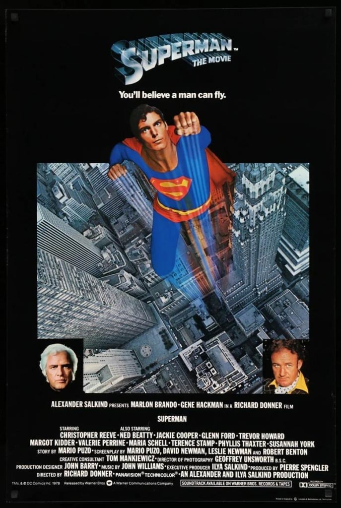 But it was money well spent, because the film smashed box-office records. And to this day, correcting for inflation, it remains one of Warner Bros’ most successful movies ever. The production also benefited from a screen play by Mario Puzo (author of The Godfather), who dropped the carefree and childish tone of the comics to create a story with universal appeal.