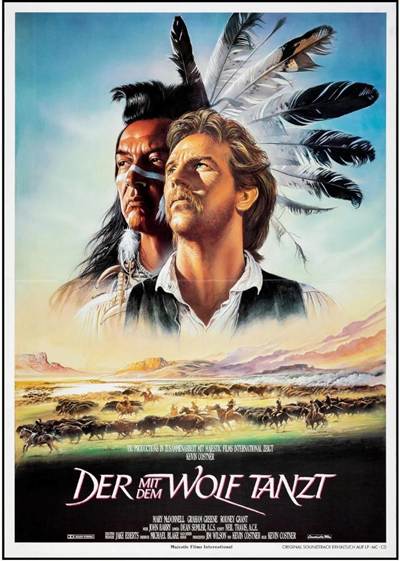 After first creating scores of drafts, Renato Casaro eventually produced two posters for Dances With Wolves. One of them was for the German version of the film. In the middle of the poster are two faces.