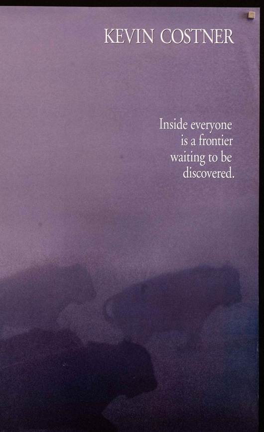 In the foreground is the face of Kevin Costner, the film’s star and director. But more interesting is the background: this depicts a group of buffalo in a foreshadowing of the famous hunt scene. And the hazy, purple hue brings a strong sense of mysticism to everything [we’ve talked about the power of the colour purple here].
