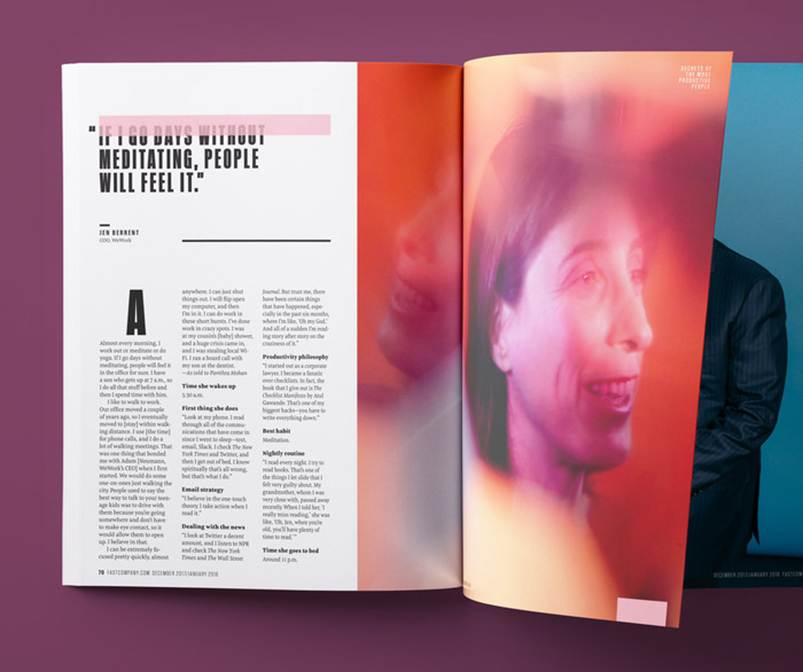 As we’ve seen, Fast Company‘s penchant for large-format photography and typography brings to mind the glossiest fashion mags. And it’s no coincidence: creative director Alice Alves is an avowed admirer of the elegant graphic design found in the pages of Harper’s Bazaar.
