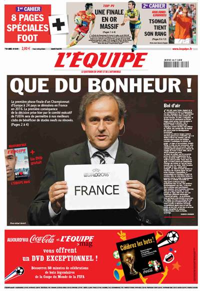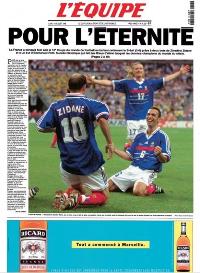 The newspaper typically sells over 200,000 copies every day: its circulation peaked at over 400,000 in the early 2000s, and achieved a record of almost 2 million sales when France won the football world cup in 1998.