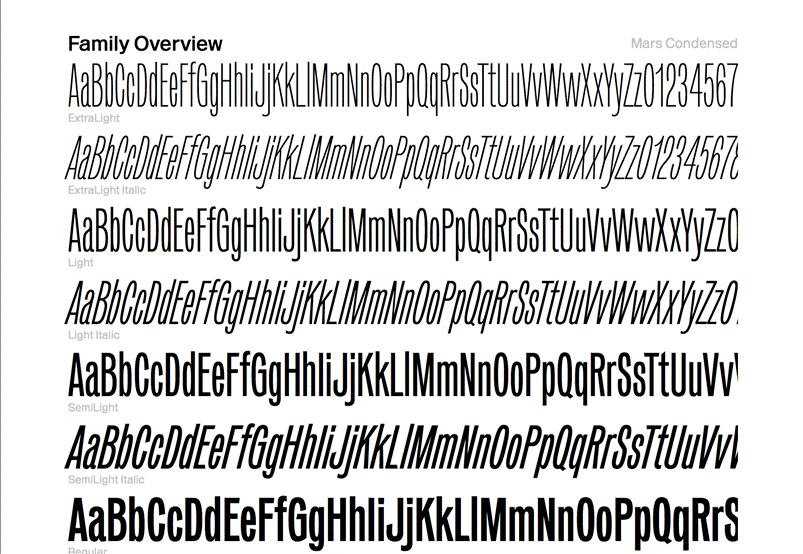 The sans-serif font Mars, designed in 2016 by Alaric Garnier, was chosen for the headlines, while ITC Cheltenham – a classic serif font with a British flavour – was used for the body text.
