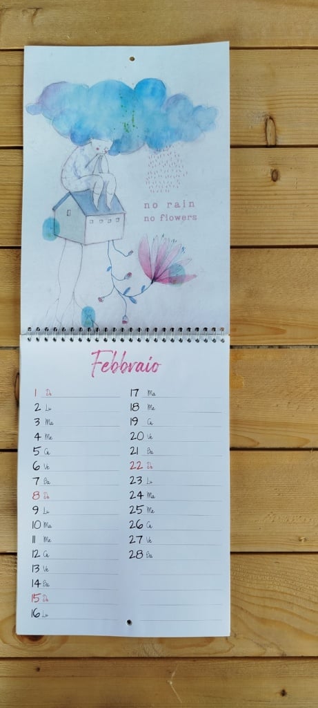 At the start I asked for your catalogue and chose the recycled paper, which I am particularly fond of. Then, a few years ago, I chose a different paper by mistake… the calendar arrived on a material I wasn’t expecting, but my customers loved it even more. Since then I have experimented more freely.